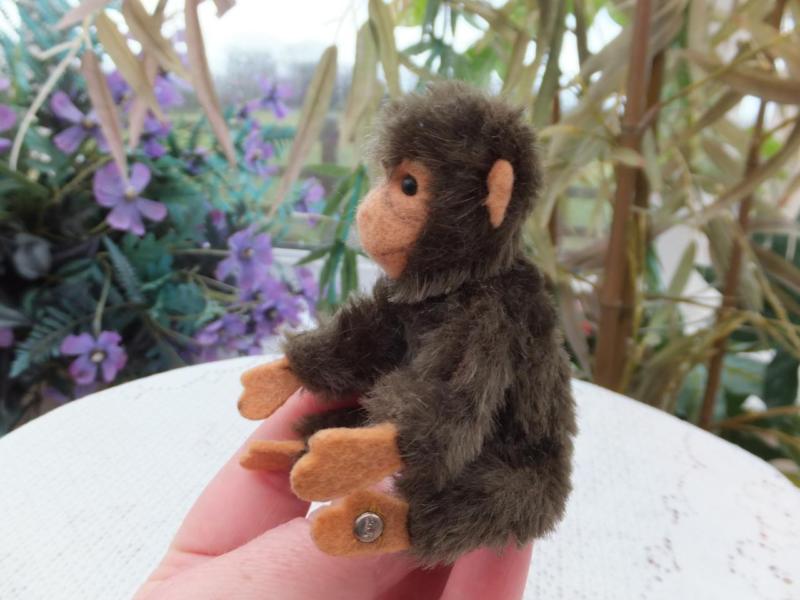 Title (ebay affiliate link): 3" Vintage Miniature Steiff Jocko Mohair Toy Monkey Silver Ear Button Doll Bear