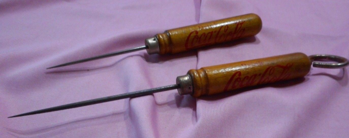 2 OLD Advertising Coca Cola Ice Picks Opener Wooden