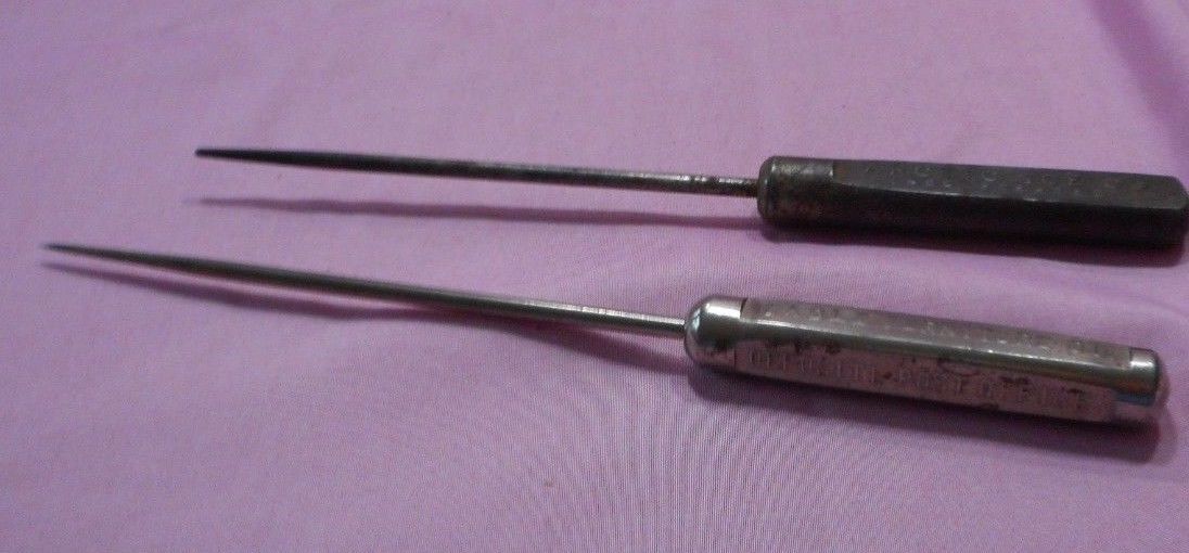 2 OLD Advertising Metal Ice Picks Cable Furniture New Albany IN + Arctic Ice
