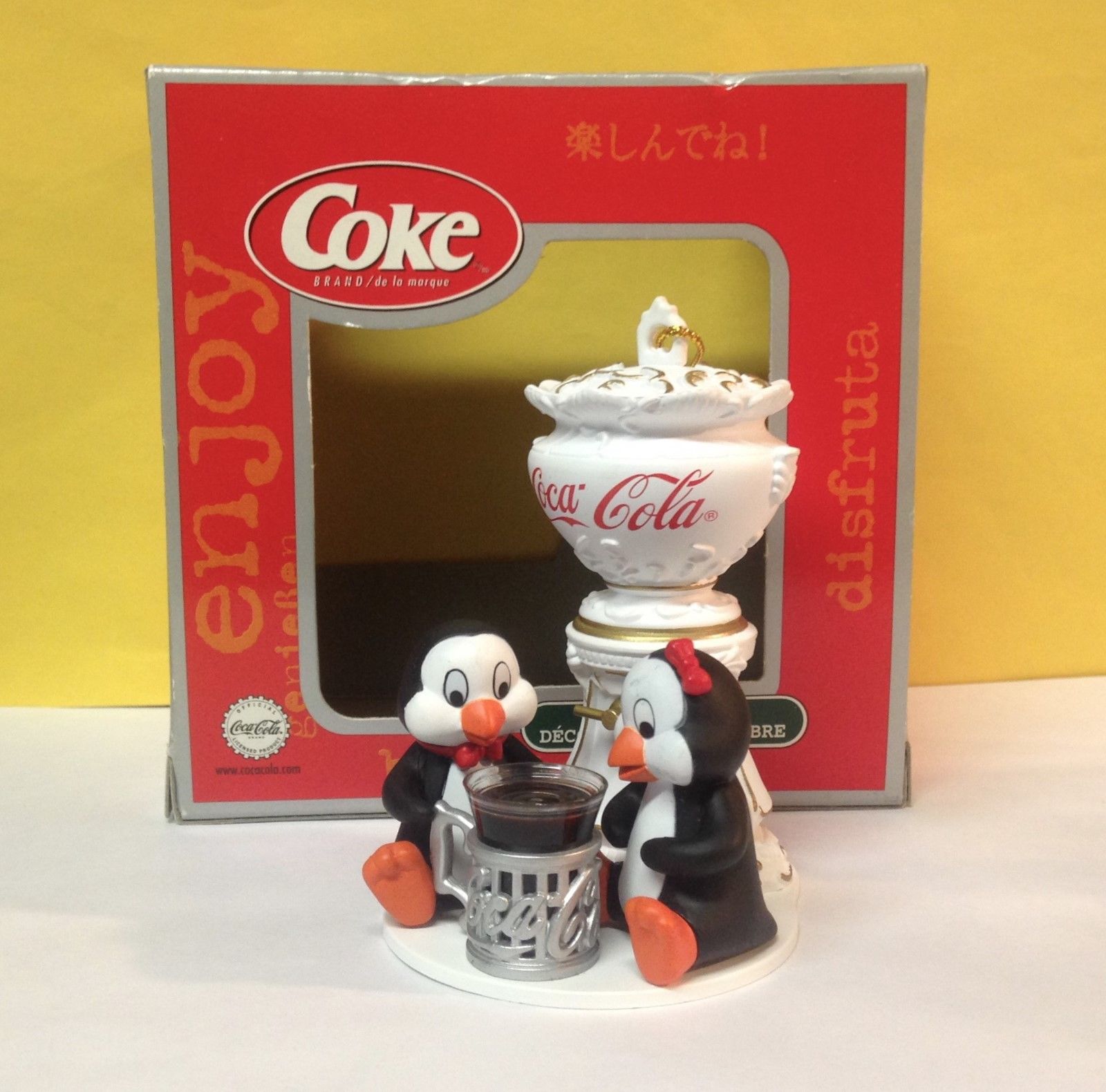 Title (ebay affiliate link): Coca-Cola CHRISTMAS Ornament PENGUINS & Coke Syrup Dispenser