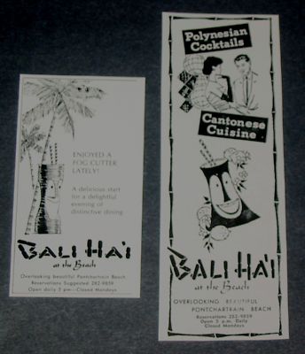 x2 1967 BALI HAI AT THE BEACH New Orleans La. Ads TIKI