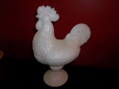 Title (ebay affiliate link): ANTIQUE WHITE MILK GLASS 1960''S 2 PIECE COVERED FOOTED ROOSTER CANDY DISH