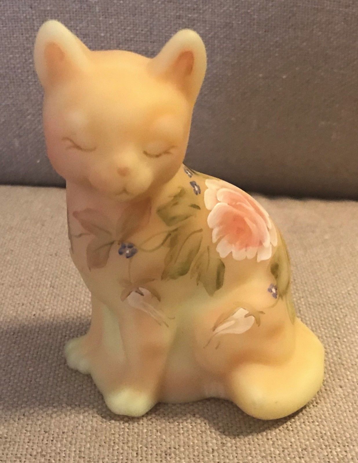 Title (ebay affiliate link): Fenton Art Glass Milk Glass Hand Painted Cat with Closed Eyes - Signed by Artist