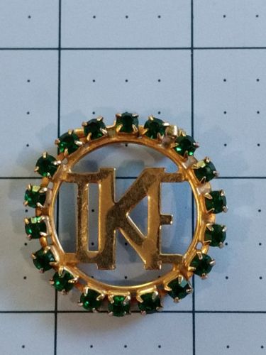 Title (ebay affiliate link): 1956 Mamie Eisenhower IKE Jewelry Pin Emerald Green Stones Gold-Toned Metal 1.5"