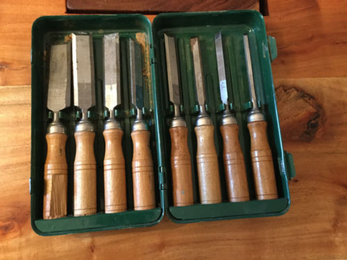Title (ebay affiliate link): Vintage Steelcraft Wood Chisel Set 8 Piece In Original Metal Case 1/4" to 1 1/2