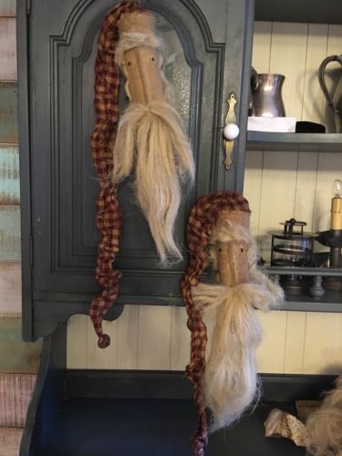 Title (ebay affiliate link): Primitive Christmas Ornaments Santa Claus Ornies set LOng hats Extreme grungy
