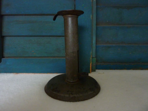 Title (ebay affiliate link): Antique Metal Hog Scraper Candlestick Riser Works Signed Great Shape