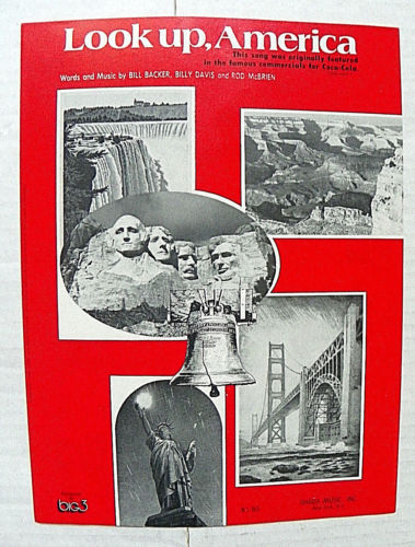 Title (ebay affiliate link): 1975 "LOOK UP, AMERICA" FEATURED IN COCA-COLA FAMOUS COMMERCIALS SHEET MUSIC