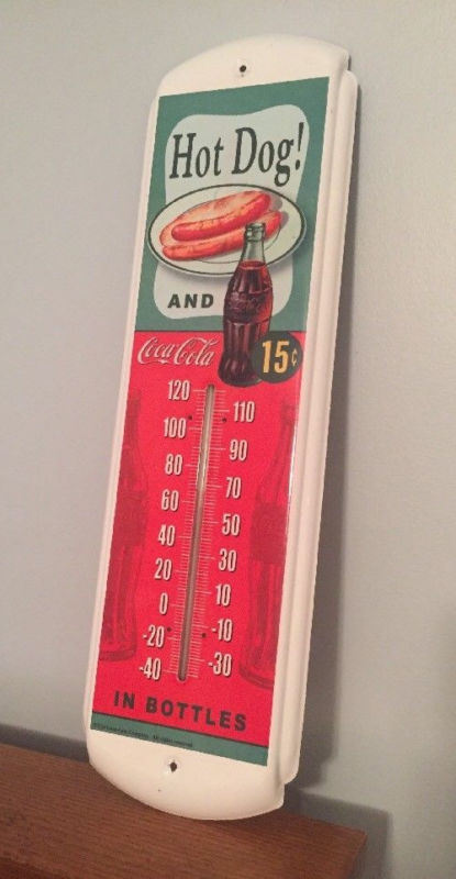 Title (ebay affiliate link): Coke Coca-Cola and Hot Dogs Thermometer Sign 17"