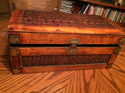 Title (ebay affiliate link): Beautiful Wood Box, Flamed Wood And Cane, Brass Handled Trunk. Decorative Box