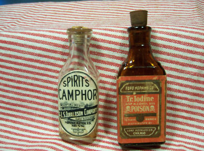 Medical-Lot- Bottles-Iodine Poison-Spirits Camphor-NR