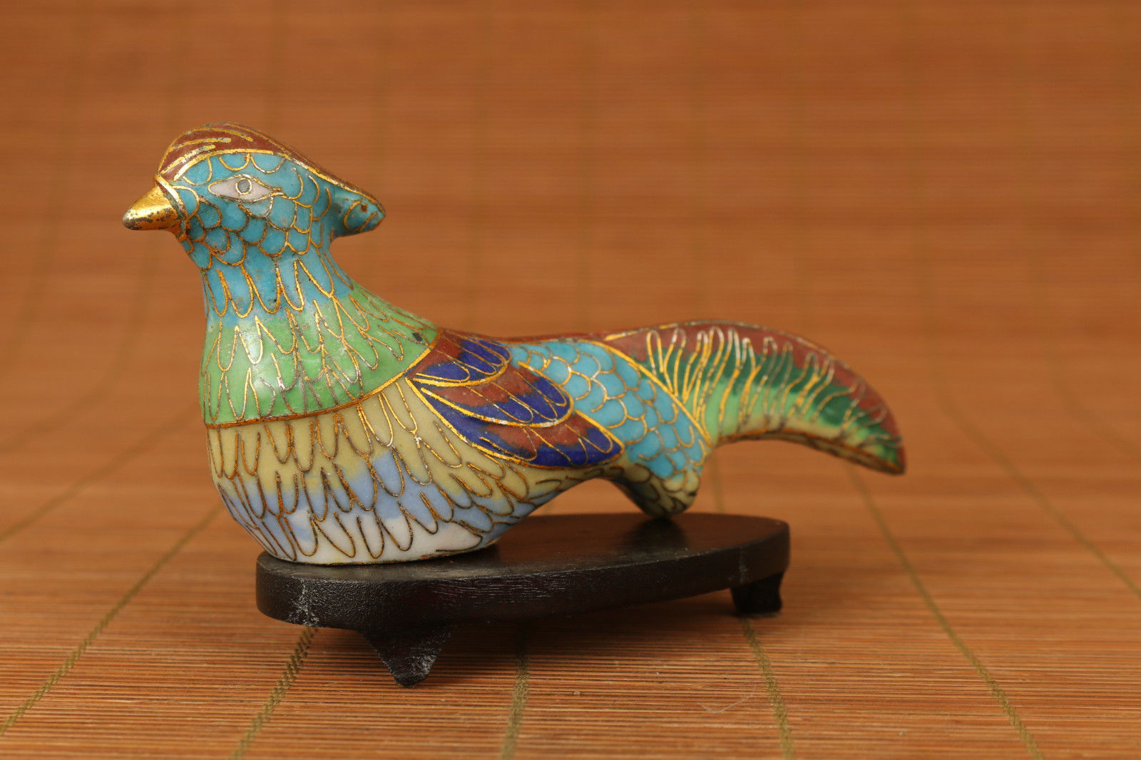 antique Rare Chinese Old Emamel Cloisonne Mandarin duck Figure Statue Netsuke