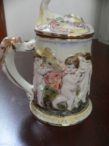 Title (ebay affiliate link): ANTIQUE CAPODIMONTE CHERUBS & ANIMALS STEIN GOLD TRIMS ITALY