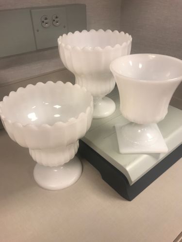 Title (ebay affiliate link): VINTAGE LARGE MILK GLASS PLANTERS, MINT CONDITION, 3pc. LOT