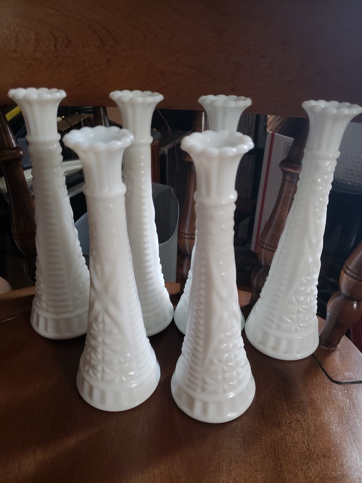 Lot of 6 Vintage Milk Glass Vases