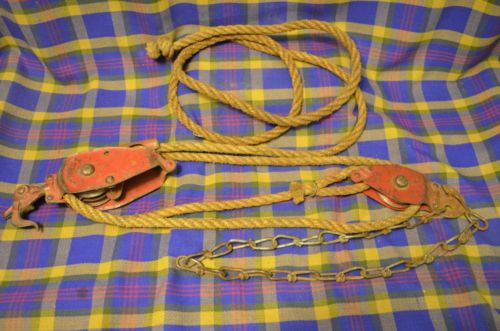 Vintage Wire Fence Stretcher w/Set of Double Pulleys, Rope & Chain