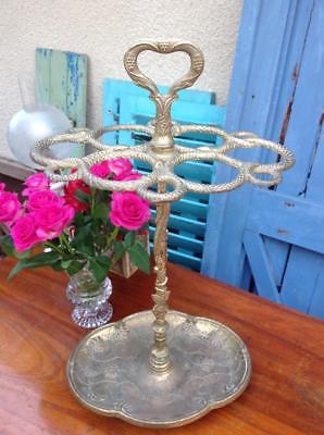 Vintage French Hollywood Regency Brass Snake Umbrella Stand Floral Motif V.Chic