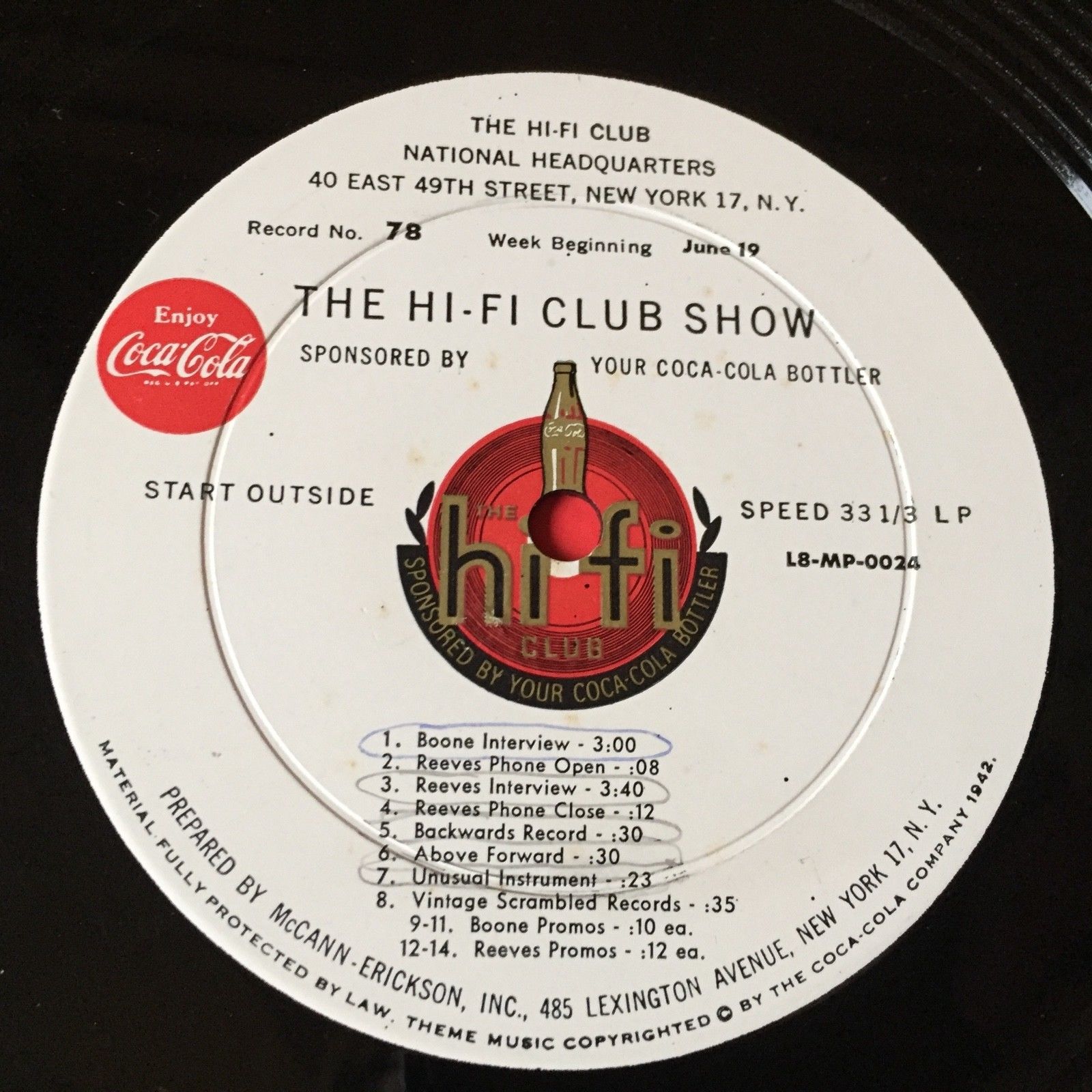 Coca Cola Hi-Fi Club ~ Rare DJ LP record - Record #78 & #79 - June 1960