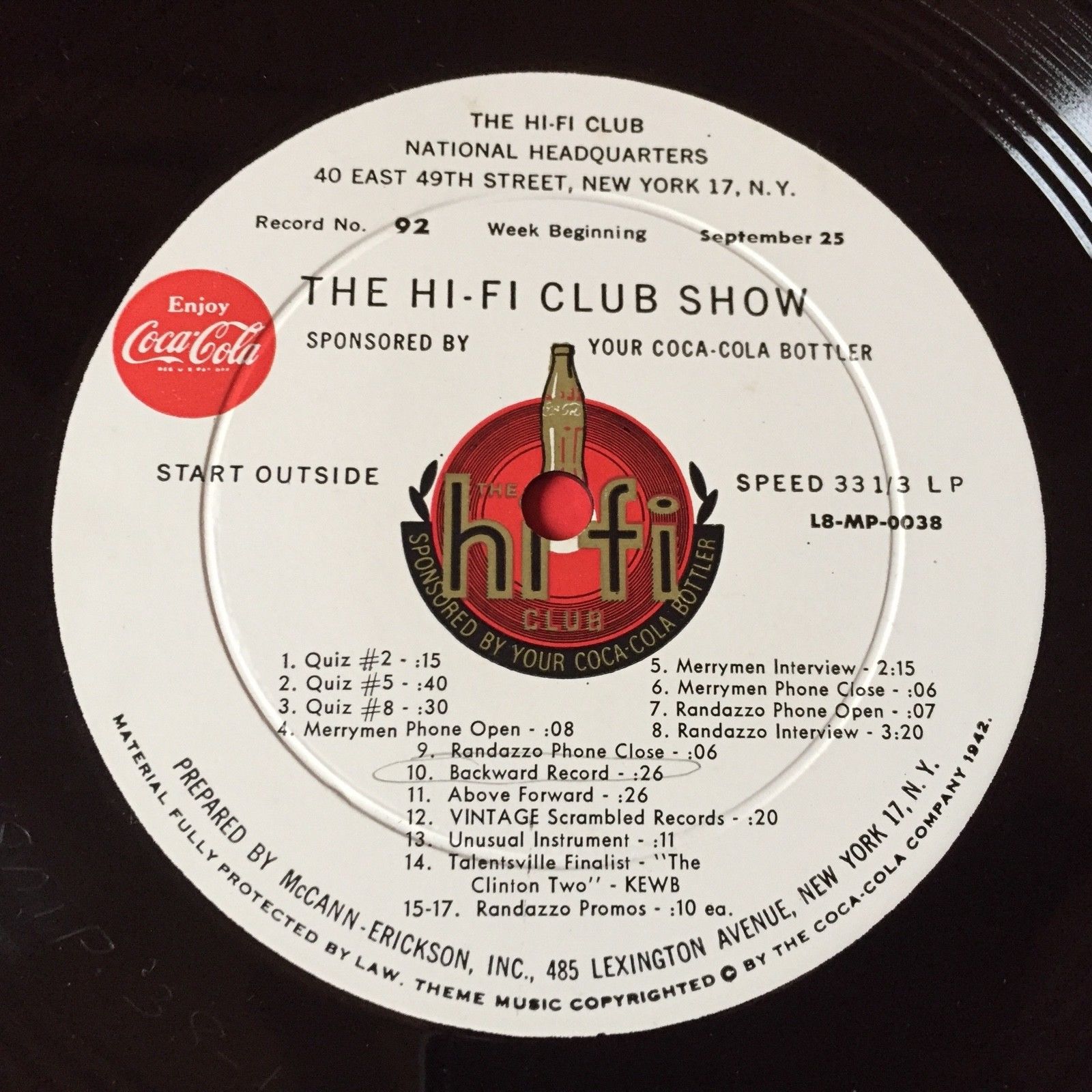 Title (ebay affiliate link): Coca Cola Hi-Fi Club ~ Rare DJ LP record - Record #92 & #93 - Sept 1960