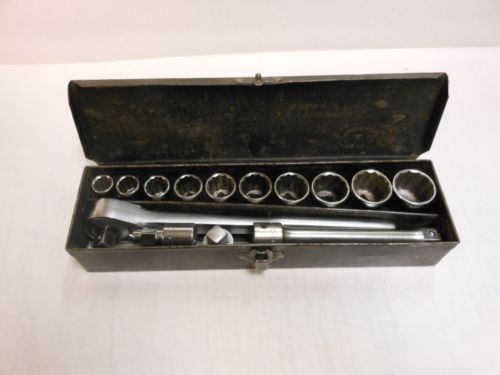 Vtg Craftsman V 1/2 Drive 14 pc Socket Wrench Set 1 1/6 - 1/2 in Metal Tool Box