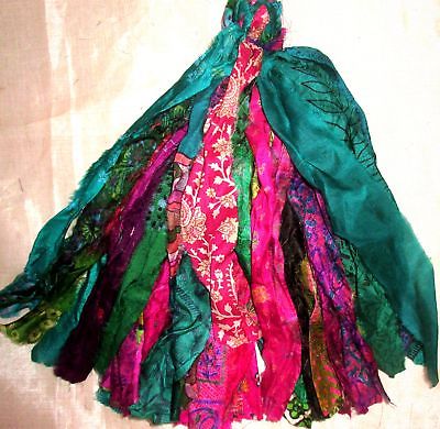 Title (ebay affiliate link): LOT PURE SILK Antique Vintage Sari TASSELS JOURNAL 50 STRAND Green Magenta DOLL