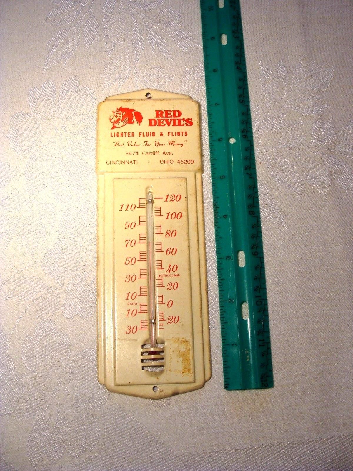 Title (ebay affiliate link): Vintage Red Devil''s Lighter Fluid & Flints Advertising Thermometer Cincinnati