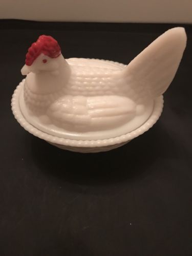 Title (ebay affiliate link): Vintage Midcentury Westmoreland Milk Glass Nesting Hen Candy Dish