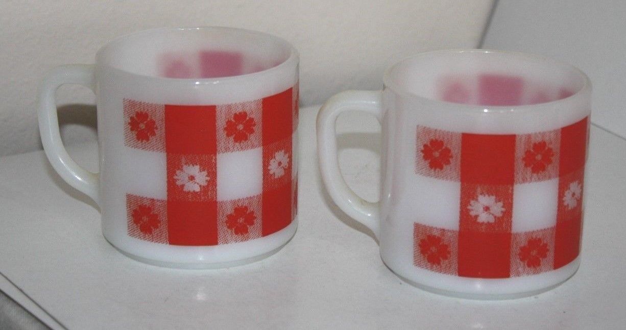 Title (ebay affiliate link): SET OF 2 VINTAGE FEDERAL RED GINGHAM COFFEE MUG CUP Made in USA Milk Glass Cup