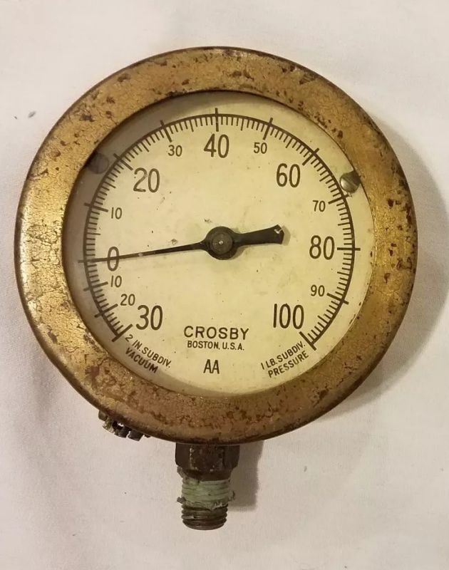 Title (ebay affiliate link): Vintage Crosby Brass 4" Pressure Gauge