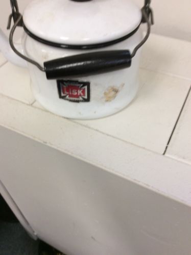 PRIMITIVE VINTAGE LISK WHITE BLACK ENAMELWARE TeaPOT CAMPFIRE KETTLE