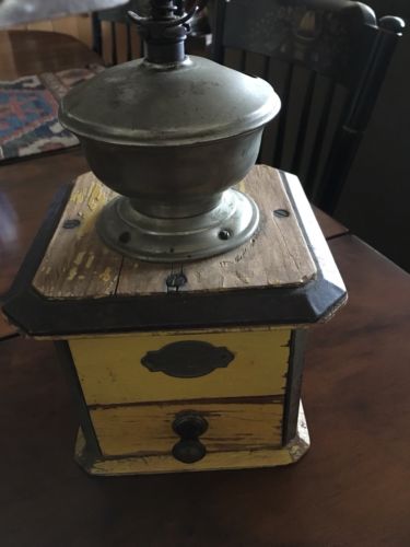 Title (ebay affiliate link): Antique Coffee Grinder In Old Worn Yellow Paint
