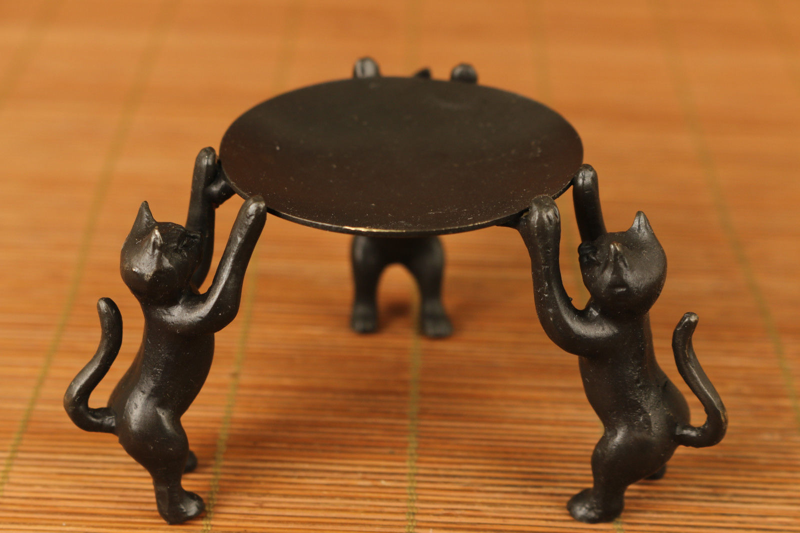 Title (ebay affiliate link): Rare Chinese Old Bronze Handmade cat Statue Oil lamp Candle stick stand