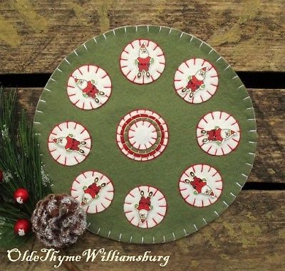 Title (ebay affiliate link): Primitive Stitchery CHRISTMAS Santa Claus Penny Rug ~ Winter Candle Mat