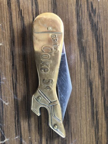 Title (ebay affiliate link): Vintage Brass Coke Cola Folding Knife In High Heel