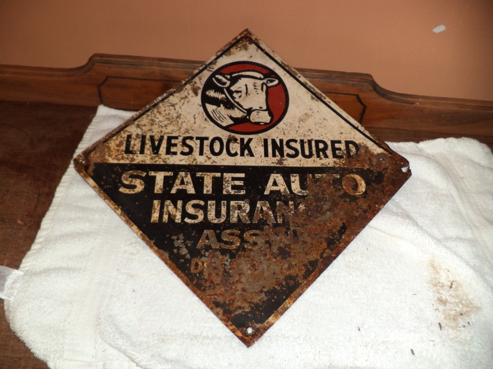 RARE Vintage State Auto Insurance Sign Antique Old Iowa