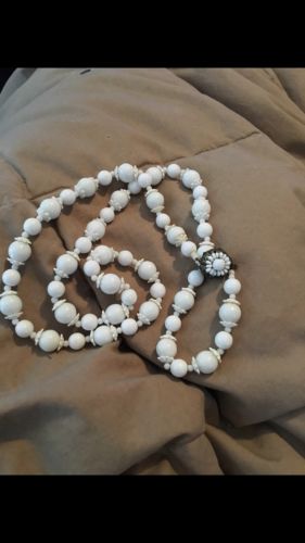 Title (ebay affiliate link): Vintage Gorgeous Signed Miriam Haskell Baroque Milk Glass Necklace
