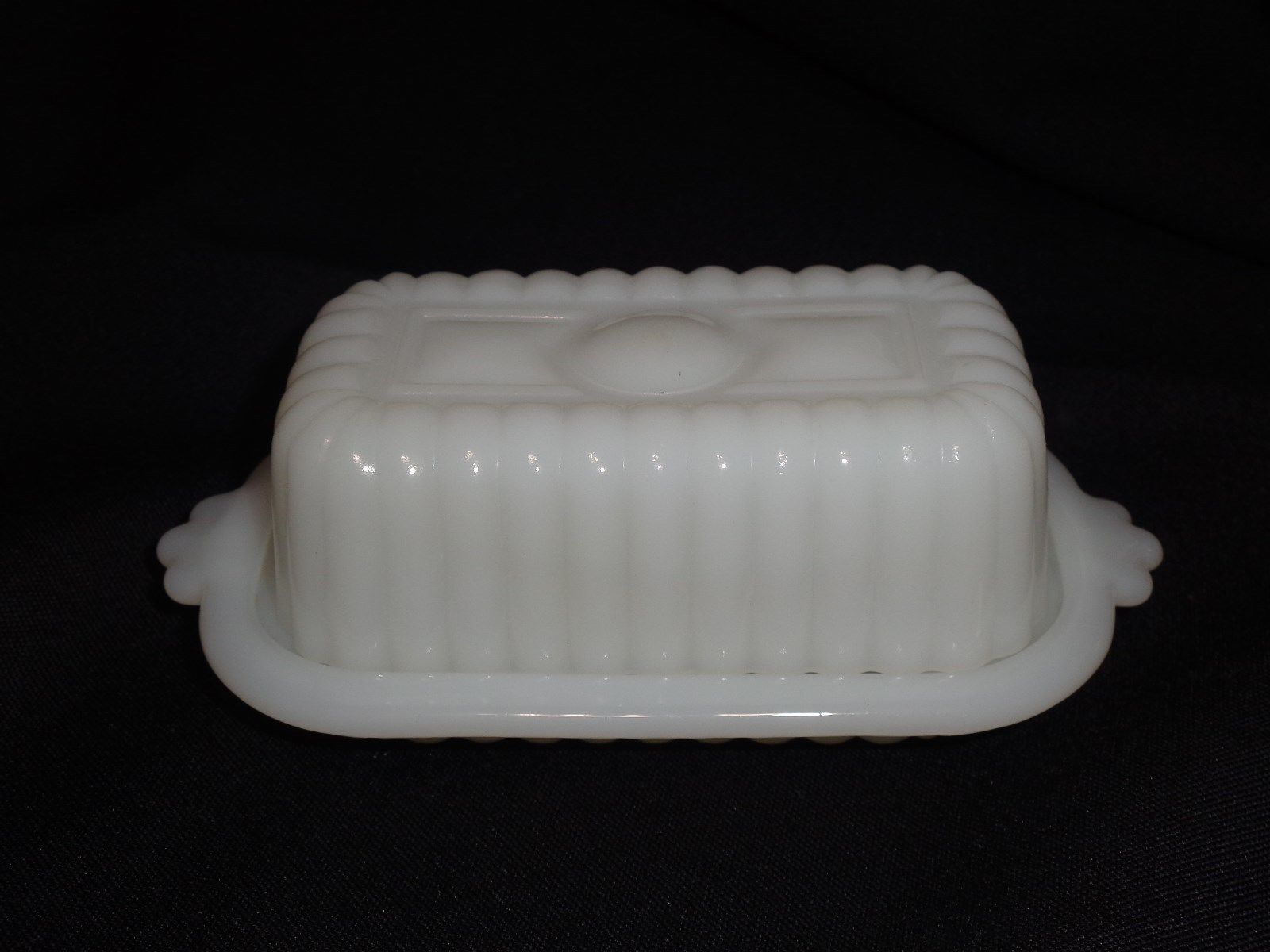 White Milk Glass Half Stick Butter Covered Dish