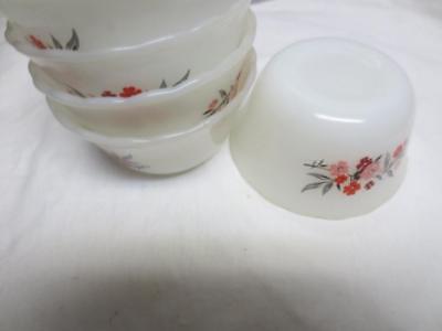 5 Fire King Milk Glass Custard Cups Bowls in Pink & Red Primrose Floral Design