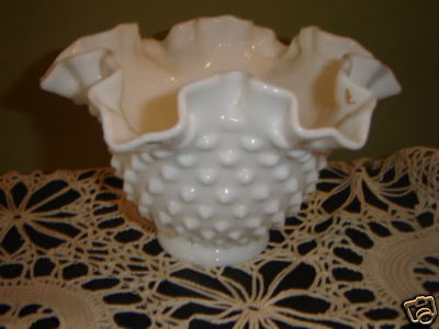 NICE 6"X 4" FLUTED FENTON MILK GLASS HOBNAIL BOWL