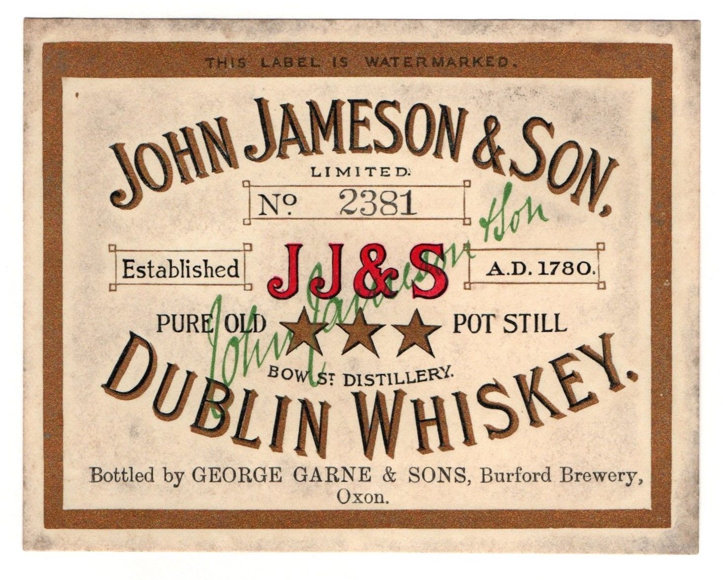 John Jameson & Son - JJ & S ***Pot Still Dublin Whiskey. bott. by Garne & Sons