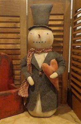Title (ebay affiliate link): Large Primitive Stump Snowman*Wool Coat*Old Heart*
