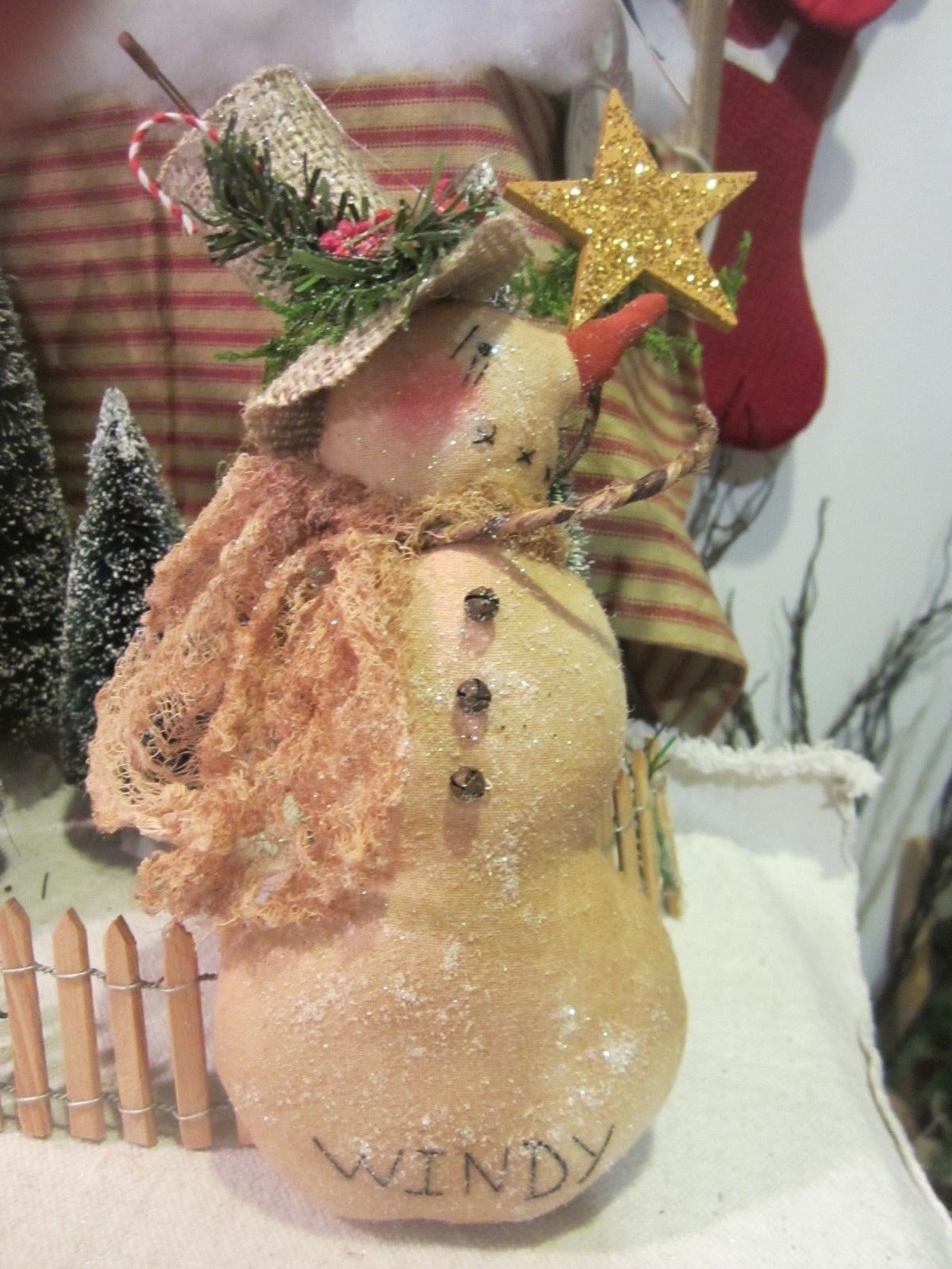 Title (ebay affiliate link): Primitive "Windy" the Snowman - Ornie or Bowl Filler - Tuck -Christmas #1764