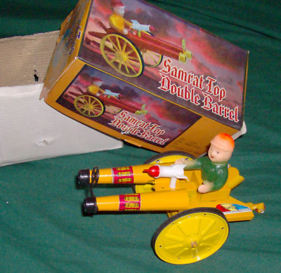VINTAGE SAMRAT TOP DOUBLE BARREL CANNON TIN TOY