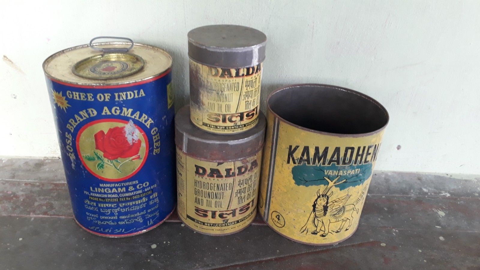 Title (ebay affiliate link): 4 TINS LOT - VINTAGE DALDA VANASPATI KAMADHENU BIG SIZE - COLLECTION TIN CAN
