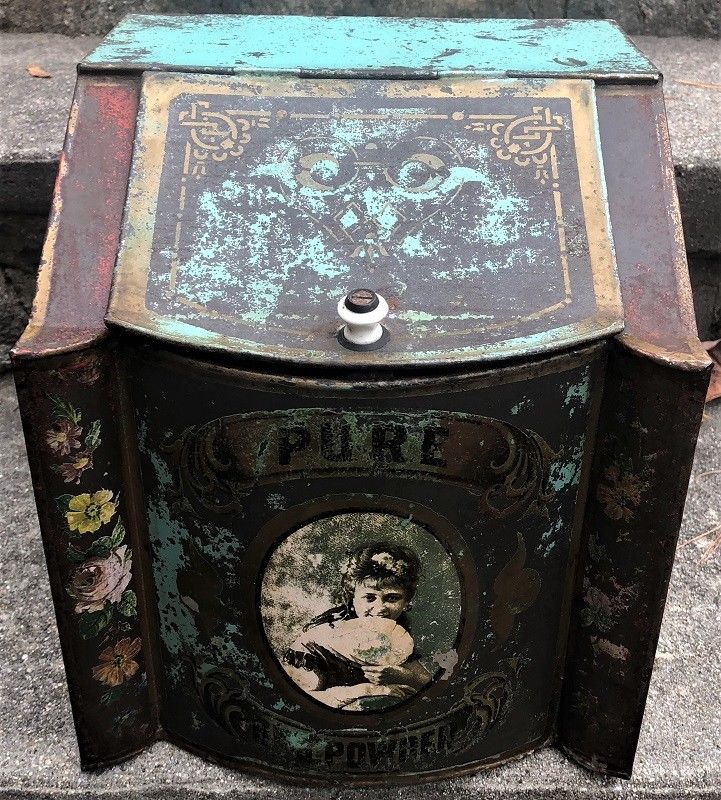 Title (ebay affiliate link): ANTIQUE 19TH C PAINT DEC ADVERTISING TIN TOLEWARE COUNTRY STORE BIN CANNISTER NR
