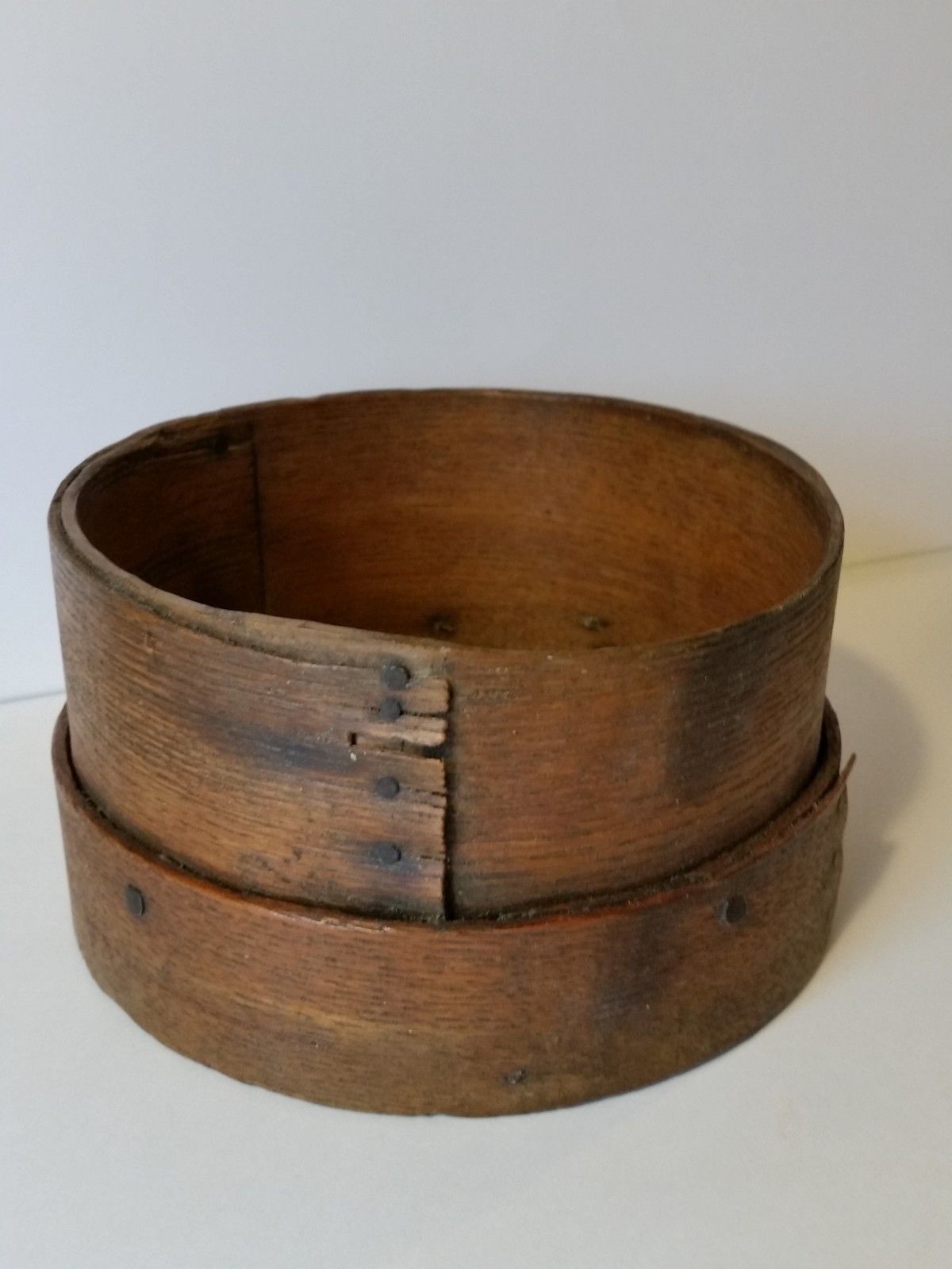 Title (ebay affiliate link): Antique Primitive Round Bentwood Oak Wood Frame Sifter Sieve 6 1/4"