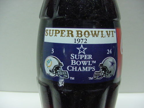 COKE COCA-COLA 8oz BOTTLE 1996 SUPER BOWL VI 1972 DALLAS COWBOYS MIAMI DOLHINS