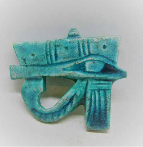 Title (ebay affiliate link): BEAUTIFUL ANCIENT EGYPTIAN GLAZED FAIENCE AMULET EYE OF HORUS