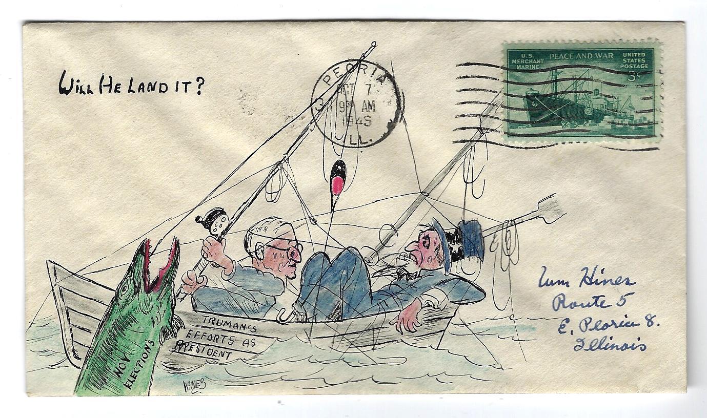 Title (ebay affiliate link): 1948 HAND-PAINTED HARRY S. TRUMAN CAMPAIGN STAMPED ENVELOPE - w/ UNCLE SAM, BOAT