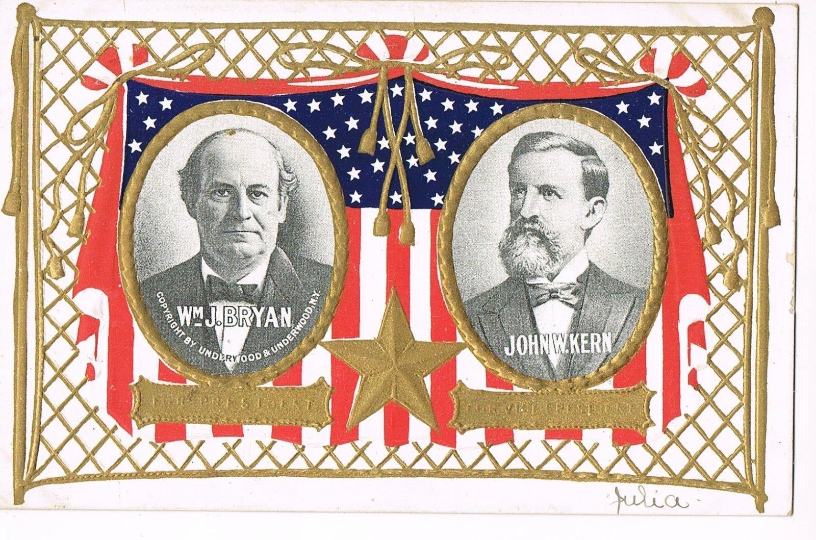 Title (ebay affiliate link): ANTIQUE Postcard 1908 DEMOCRATIC CANDIDATES FOR PRESIDENT OF U.S./ BRYAN & KERN
